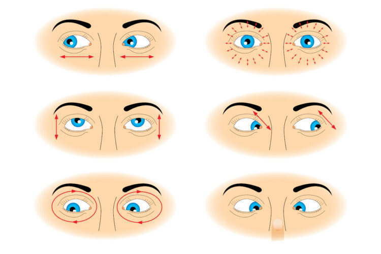 Jedna od najjednostavnijih vježbi je pravilo 20-20-20: svakih 20 minuta gledajte u predmet udaljen 20 stopa (oko 6 metara) 20 sekundi. Ovo pomaže očnim mišićima da se opuste i smanji naprezanje. Još jedna korisna vježba je kruženje očima u oba smjera kako bi se poboljšala fleksibilnost mišića i smanjila ukočenost.